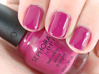 On my nails is Keys to My Hybrid from the Metro Too Chic Sephora by OPI collection, which is a gorgeous, glossy, almost-hot-pink berry magenta colour.